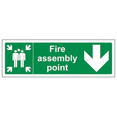 V Safety Fire Assembly Point Arrow Down 300 x 100 mm Self Adhesive Vinyl Aluminium Effect Sign
