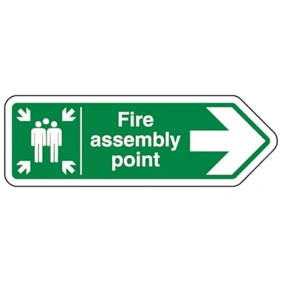 V Safety Fire Assembly Point Arrow Right Shaped Sign 450 x 150 mm 2mm Super Tough Rigid Plastic