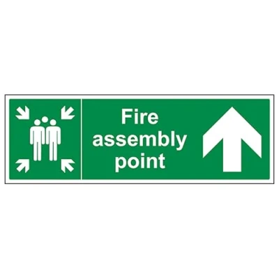 V Safety Fire Assembly Point Arrow Up 450 x 150 mm 3mm Brushed Aluminium Composite Sign