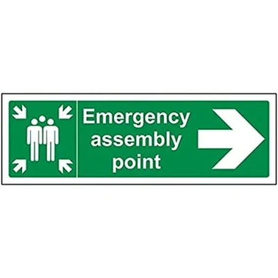 V Safety Fire Assembly Point Emergency Arrow Right 300 x 100 mm Sign
