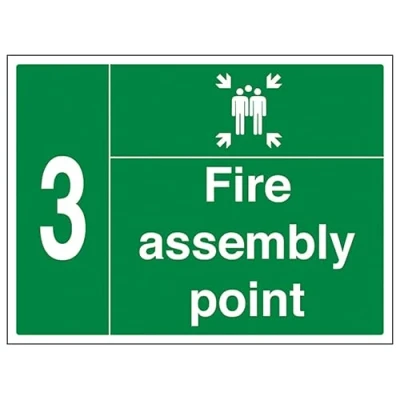 V Safety Fire Assembly Point with Family and Number 3 400 x 300 mm 2mm Rigid Plastic Sign