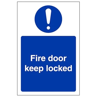 V Safety Fire Door Keep Locked Portrait 150 x 200 mm Self Adhesive Vinyl Aluminium Effect Sign