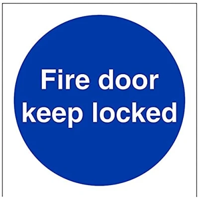 Helps to fulfil obligations to show vital escape route information about fire doors for all employees and visitors as per Health and Safety (Safety Signs & Signals) Regulations 1996 Conforms to EN ISO 7010:2012 Square Orientation. Sign reads "Fire Door Keep Locked" Highly durable 1mm plastic material and screen printed message will stand the test of time Sign measures 100 x 100mm