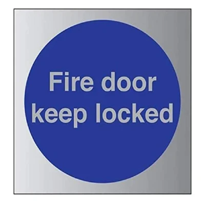 V Safety Fire Door Keep Locked Sign 150mm x 3mm Brushed Alu Comp