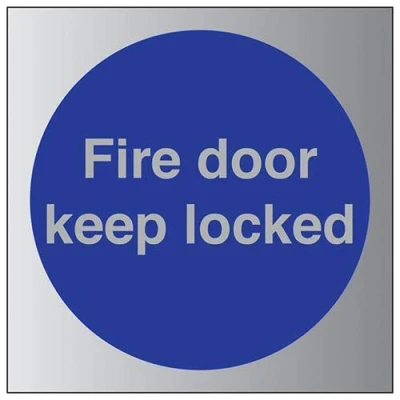 V Safety Fire Door Keep Locked Sign 200mm x Self Adhesive Alu Effect