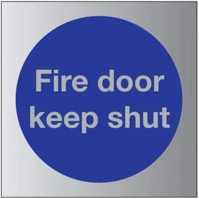 V Safety Fire Door Keep Shut Sign 150mm x 3mm Brushed Alu Comp