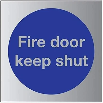 V Safety Fire Door Keep Shut Sign 80mm x 3mm Brushed Alu Comp
