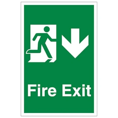 V Safety Fire Exit Arrow Down Portrait 200 x 300 mm Self Adhesive Vinyl Aluminium Effect Sign