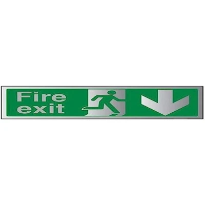 V Safety Fire Exit Arrow Down Sign 600mm x 200mm 3mm Brushed Alu Comp