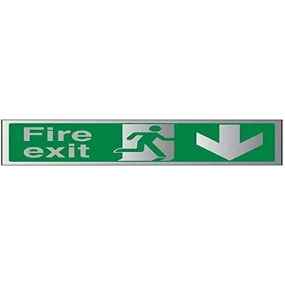 V Safety Fire Exit Arrow Down Sign 600mm x 200mm Self Adhesive Alu Effect