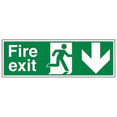 V Safety Fire Exit Arrow Down Sign Landscape 450mm x 150mm 2mm Rigid Plastic