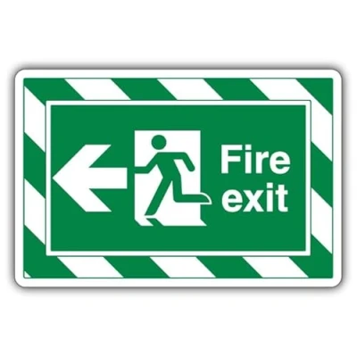V Safety Fire Exit Arrow Left ExtraViz 350 x 250 mm Glow In The Dark Self Adhesive Vinyl Sign
