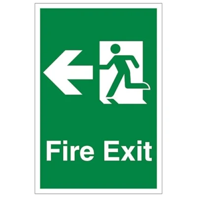 V Safety Fire Exit Arrow Left Portrait 200 x 300mm 1mm Rigid Plastic Sign