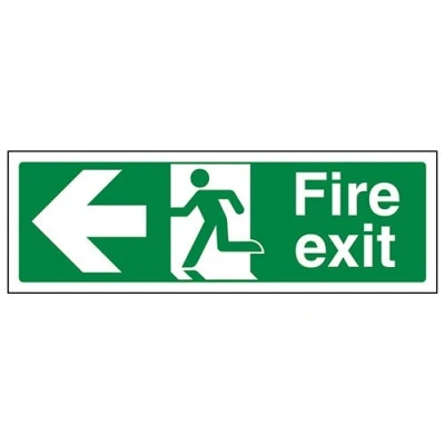 V Safety Fire Exit Arrow Left Sign 300 mm x 100 2 Super Strong PETG