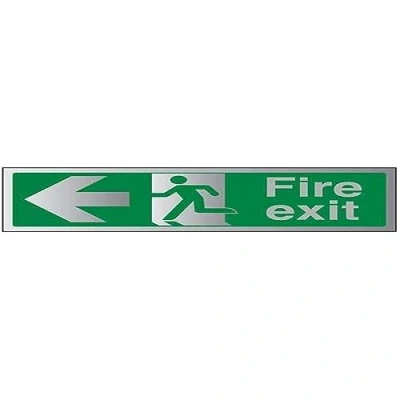V Safety Fire Exit Arrow Left Sign 450mm x 150mm Self Adhesive Alu Effect