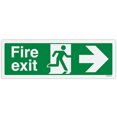 V Safety Fire Exit Arrow Right Sign 300 x 100 mm Self Adhesive Monomeric Vinyl