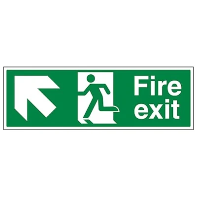 V Safety Fire Exit Arrow Up Left 450 x 150 mm 3mm Aluminium Composite Sign