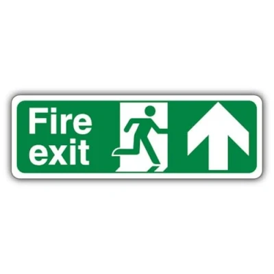 Wording & Purpose - Sign reads "Fire Exit Arrow Up"; designed to mark escape routes and exit doors for safe evacuation. Material & Build - 3 mm aluminium composite (ACM) that is lightweight, rigid, weatherproof and resistant to rust and corrosion; retro-reflective finish that enhances night-time and long-range visibility in low-light conditions. Visibility & Legibility – High‑contrast colours and standard symbols maximise readability; lightweight build supports easy placement and a consistent professional look across your site. Compliance by Design – Manufactured to follow UK/EU safety-sign rules, using the correct EN ISO 7010 pictograms, shapes and colour coding, with layouts aligned to HSE Safety Signs & Signals Regulations (1996) and BS 5499 legibility principles for clear, consistent communication. Made in Britain – Manufactured in Britain using premium materials for dependable quality, durable finishes and fast turnaround; engineered for high‑traffic commercial settings.