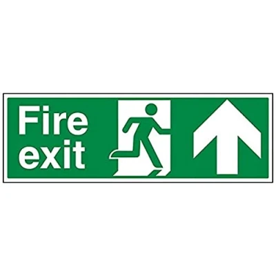 V Safety Fire Exit Arrow Up Sign 600mm x 200mm 1mm Rigid Plastic