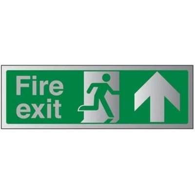 V Safety Fire Exit Arrow Up Sign 600mm x 200mm 3mm Brushed Alu Comp