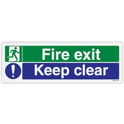 V Safety Fire Exit/Keep Clear Sign 300 x 100 mm Self Adhesive Monomeric Vinyl