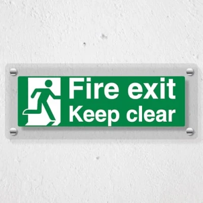 Vibrant, high-quality print enhanced with a white backing to ensure clear, eye-catching messaging Increased visibility and added sense of depth is achieved through the use of the 20mm wall mounted stand-off fixings Complies with EN ISO 7010 and BS 5499 Fire safety signs, notices and graphic symbols Designed to display clear messages in a fire emergency Professional high-gloss finish - the transparent Perspex material enhances readability to effectively convey safety messages and information