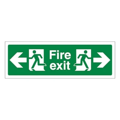 V Safety Fire Exit Left & Right 300 x 100 mm Glow In The Dark 1mm Rigid Plastic Sign