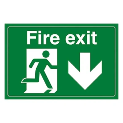 V Safety Fire Exit/Man Running/Down 300 x 200 mm Self Adhesive Vinyl Sign