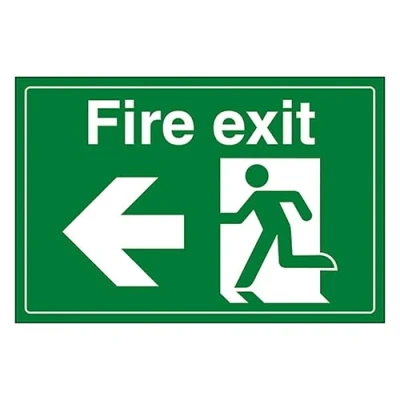 V Safety Fire Exit/Man Running/Left 300 x 200 mm Self Adhesive Vinyl Sign