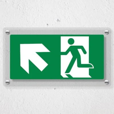 Vibrant, high-quality print enhanced with a white backing to ensure clear, eye-catching messaging Increased visibility and added sense of depth is achieved through the use of the 20mm wall mounted stand-off fixings Complies with EN ISO 7010 and BS 5499 Fire safety signs, notices and graphic symbols Designed to display clear messages in a fire emergency Professional high-gloss finish - the transparent Perspex material enhances readability to effectively convey safety messages and information
