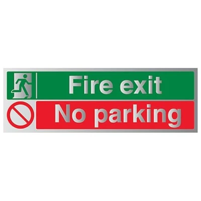 V Safety Fire Exit/No Parking 300 x 100 mm Self Adhesive Vinyl Aluminium Effect Sign