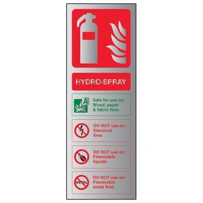 V Safety Fire Extinguisher Hydro Spray ID Sign 100mm x 280mm Self Adhesive Alu Effect