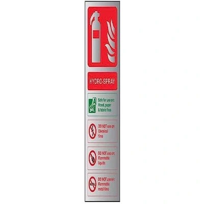V Safety Fire Extinguisher Hydro Spray ID Sign 75mm x 200mm 3mm Brushed Alu Comp