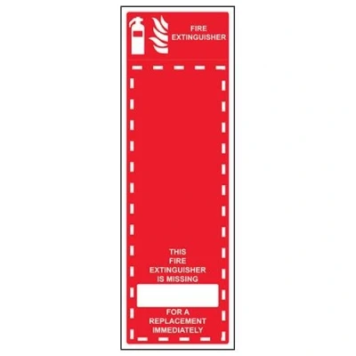 Helps fulfil obligations to convey essential information relating to fire fighting equipment as per Health and Safety (Safety Signs & Signals) Regulations 1996 Conforms to EN ISO 7010:2012 Portrait Orientation. Sign reads "This Fire Extinguisher Is Missing" Highly durable 1mm plastic material and screen printed message will stand the test of time Sign measures 150 x 450mm
