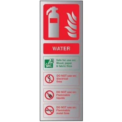 V Safety Fire Extinguisher Water ID Sign 100mm x 280mm 3mm Brushed Alu Comp