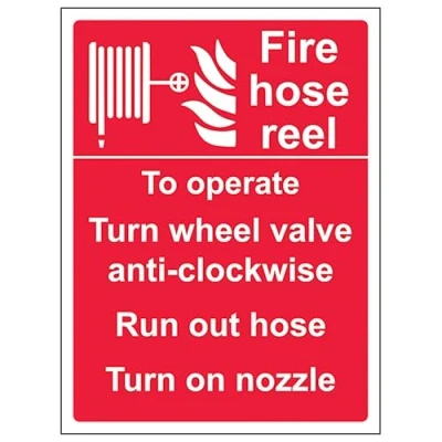 V Safety Fire Hose Reel Self Operated 150 x 200 mm 3mm Brushed Aluminium Composite Sign
