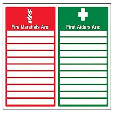 V Safety Fire Marshals/First Aiders Sign 400mm x 300mm Self Adhesive Vinyl