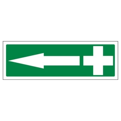 V Safety First Aid Arrow Left 300 x 100 mm Self Adhesive Vinyl Aluminium Effect Sign