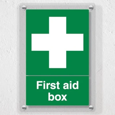 Vibrant, high-quality print enhanced with a white backing to ensure clear, eye-catching messaging Professional high-gloss finish - the transparent Perspex material enhances readability to effectively convey safety messages and information HSE guidance on The Health and Safety (First-Aid) Regulations 1981 states that employers must ensure that first-aid equipment and facilities are suitably marked and easily accessible Designed specifically to help locate first aid equipment in the event of an emergency Increased visibility and added sense of depth is achieved through the use of the 20mm wall mounted stand-off fixings