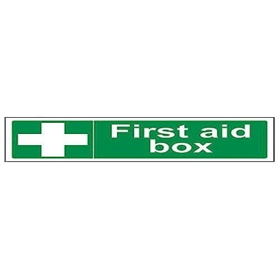 Helps to fulfil obligations to inform of where first aid supplies are kept as per First Aid At Work Regulations, as well as Health and Safety (Safety Signs & Signals) Regulations 1996 Conforms to EN ISO 7010:2012 Landscape Orientation. Sign reads "First Aid Box" Highly durable and heavy duty 2mm rigid plastic material Sign measures 450 x 150mm