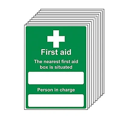 Helps to fulfil obligations to inform of where first aid supplies are kept as per First Aid At Work Regulations, as well as Health and Safety (Safety Signs & Signals) Regulations 1996 Conforms to EN ISO 7010:2012 Portrait Orientation. Sign reads "The Nearest First Aid Box Is Situated. Person In Charge" Highly durable Self Adhesive Vinyl material and screen printed message will stand the test of time Sign measures 150 x 200mm. Self Adhesive material will adhere securely to most surfaces
