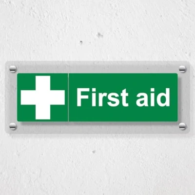 Vibrant, high-quality print enhanced with a white backing to ensure clear, eye-catching messaging Professional high-gloss finish - the transparent Perspex material enhances readability to effectively convey safety messages and information HSE guidance on The Health and Safety (First-Aid) Regulations 1981 states that employers must ensure that first-aid equipment and facilities are suitably marked and easily accessible Designed specifically to help locate first aid equipment in the event of an emergency Increased visibility and added sense of depth is achieved through the use of the 20mm wall mounted stand-off fixings