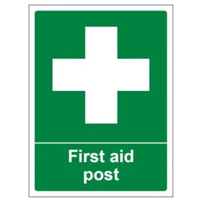V Safety First Aid Post Portrait 200 x 300 mm Self Adhesive Vinyl Aluminium Effect Sign