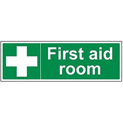 Helps to fulfil obligations to inform of where first aid supplies are kept as per First Aid At Work Regulations, as well as Health and Safety (Safety Signs & Signals) Regulations 1996 Conforms to EN ISO 7010:2012 Landscape Orientation. Sign reads "First Aid Room" Highly durable Self Adhesive Vinyl material and screen printed message will stand the test of time Sign measures 450 x 150mm. Self Adhesive material will adhere securely to most surfaces
