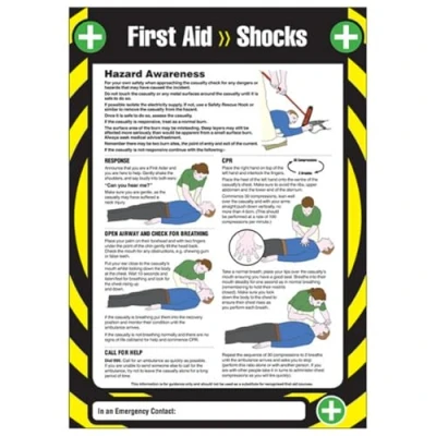 V Safety First Aid Shocks Poster 420 x 594 mm (A2) Premium 0.3mm Flexi Plastic Sign
