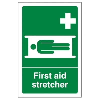 V Safety First Aid Stretcher Portrait 150 x 200 mm 3mm Brushed Aluminium Composite Sign