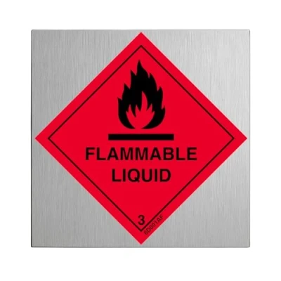 V Safety Flammable Liquid 100 x mm Self Adhesive Vinyl Aluminium Effect Sign