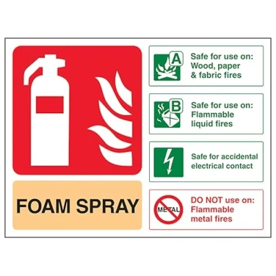 V Safety Foam Spray Safe For Electrical Fire Extinguisher Landscape 150 x 100 mm 2mm Rigid Plastic Sign