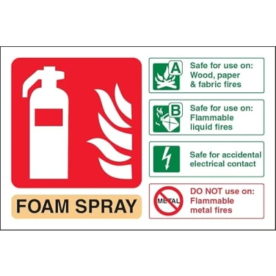 V Safety Foam Spray Safe For Electrical Fire Extinguisher Landscape 200 x 150 mm 3mm Brushed Aluminium Composite Sign
