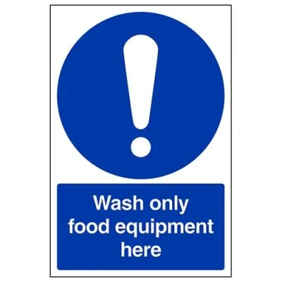 Helps to fulfil legal obligations to remind staff and visitors to wear the appropriate PPE in catering environments to ensure personal safety and maintain hygiene levels Conforms to EN ISO 7010:2012 - Mandatory Signs feature a round symbol with a blue background of at least 50% of the total sign area, with a white pictogram and text Portrait Orientation. Sign reads "Wash Only Food Equipment Here" Highly durable 1mm plastic material and screen printed message will stand the test of time Sign measures 200 x 300mm